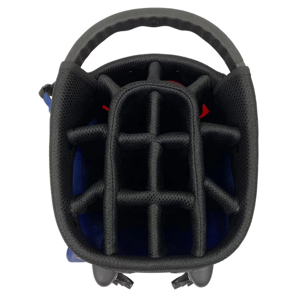 A tournament-style bag designed for the competitive player. Features lightweight, water-resistant material construction, 14-way club divider, and additional pockets for plenty of storage. The club divider will hold clubs in place so even shorter clubs will not fall through to the bottom.