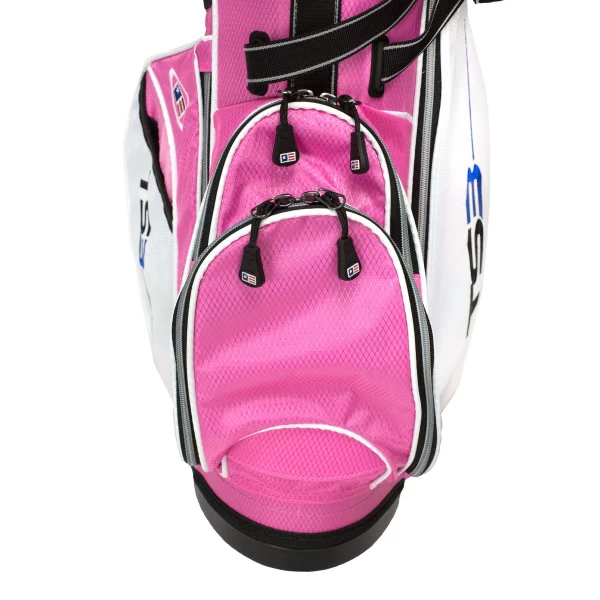 The TS3 Stand Bag features a 4-way divider top integrated with 3 handles for easy lifting. This is a high performance and lightweight bag with quick leg action. The bag is designed to handle a full set of clubs and can be used as a carry bag or used on a cart.